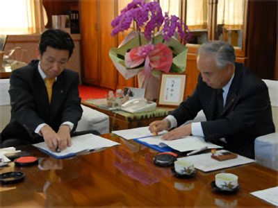 光市役所において、市川熙(ひろし)光市長と馬場一則九州地区本部長とが出席し、「災害時における物資供給及び平常時における防災活動に関する協定書」への調印式が行われました。 市川光市長は「私達は現在豊かな生活を送っており、災害直後から多様な物資の要望がある。それに応えるには今回の協定は心強い」とあいさつされました。