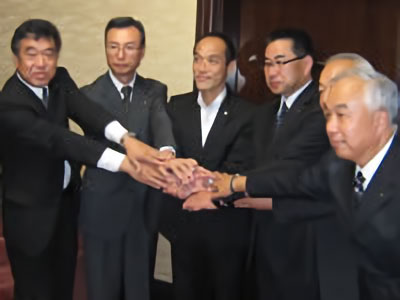 茨城県石岡市役所において、横田凱夫市長とコメリ災害対策センター杉田和夫理事他6団体代表者が出席し、災害時応援協定合同調印式が行われました。横田市長は「最近、岩手宮城内陸地震や集中豪雨など災害が増えている。石岡市も南関東直下型地震の影響を受けると予想されている。起こりうる大災害に対し、市民が安全で安心できる組織体制を整備し、力を入れていきたい」と話されました。